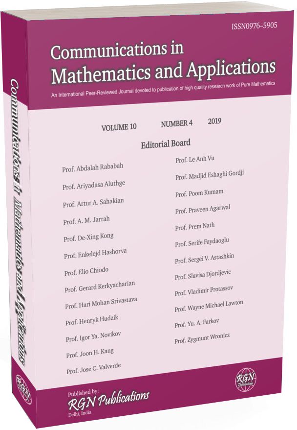 The "Communications in Mathematics and Applications” (CMA) is an international journal devoted to the publication of original and high-quality research of Pure and Applied Mathematics. The journal "Communications in Mathematics and Applications” (CMA) is being regularly published since 2010.